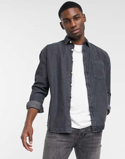 Asos Design 90s Oversized Denim Shirt In Black Asos